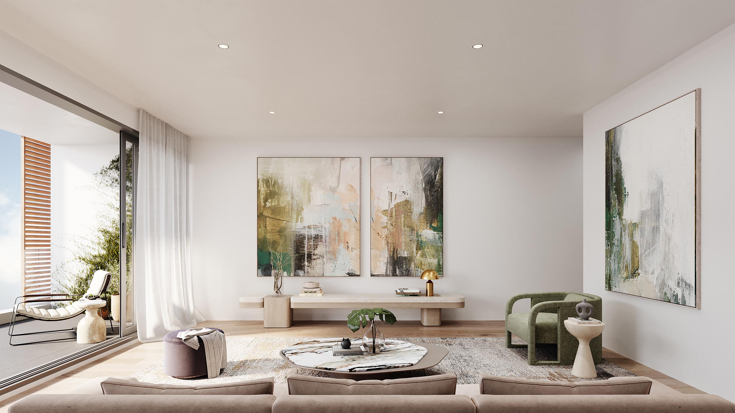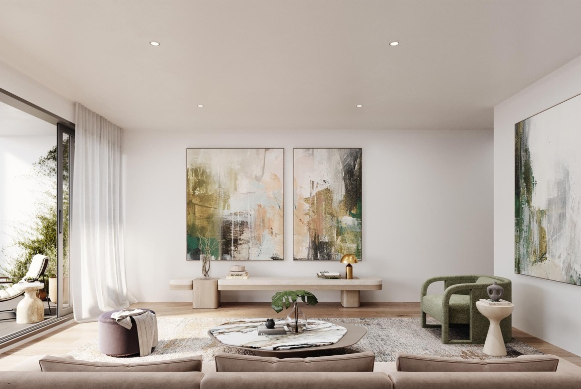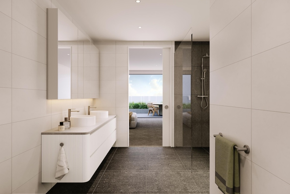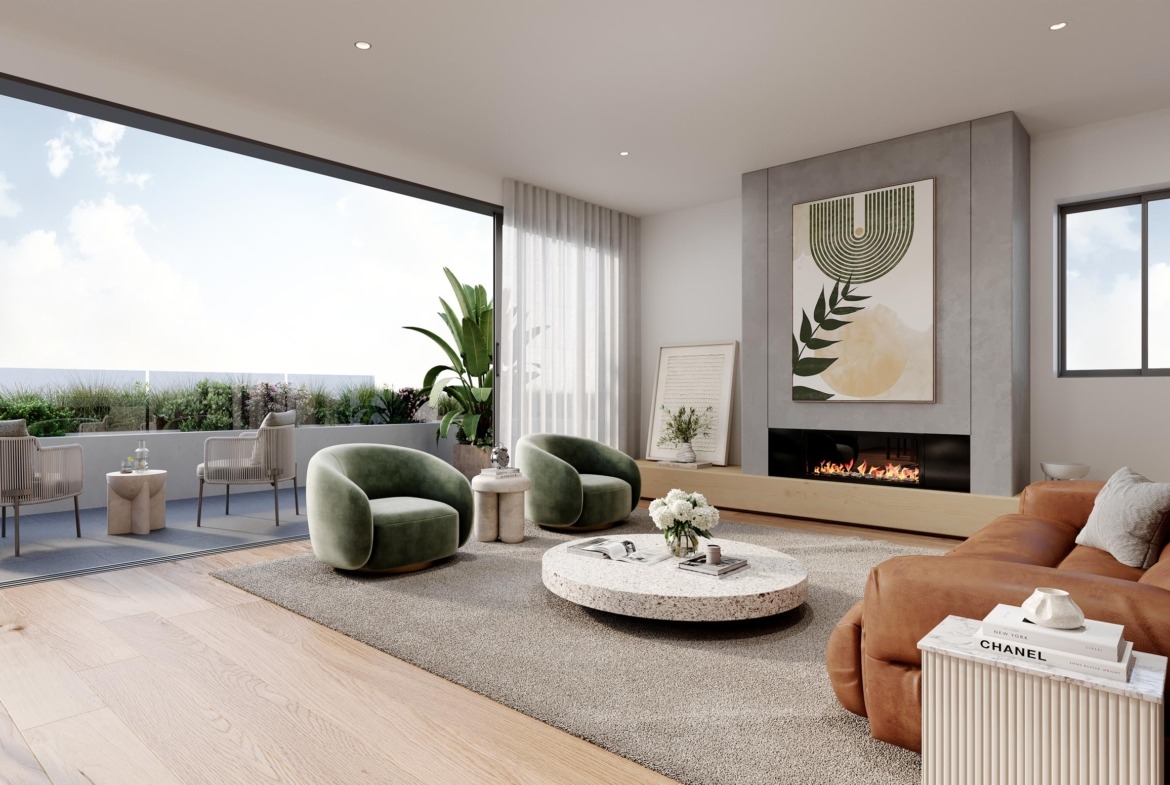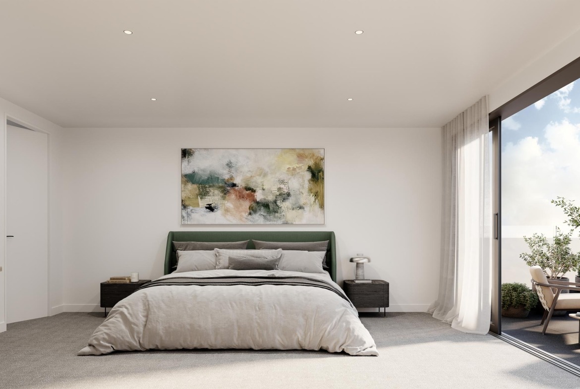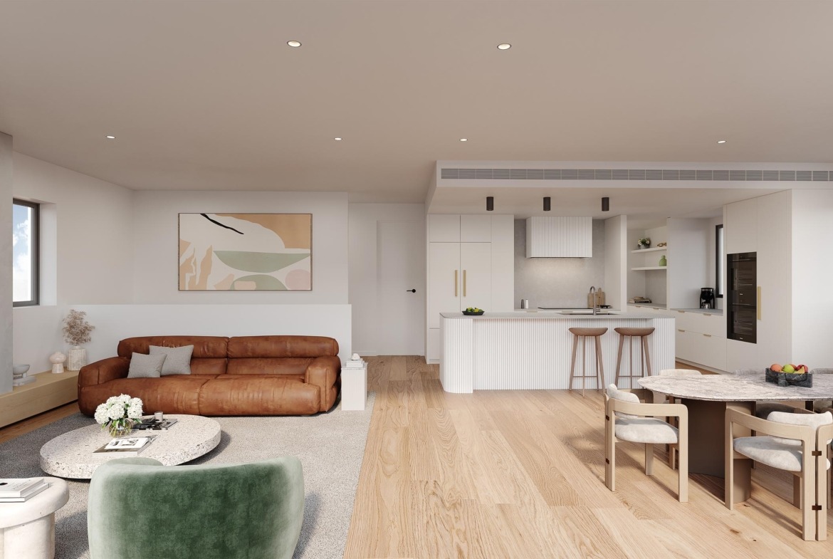 Each apartment has been thoughtfully crafted to combine modern design with everyday practicality. Open-plan living zones flow seamlessly from kitchen to dining and lounge, extending naturally to a private balcony. Expansive floor-to-ceiling windows fill interiors with natural light, while warm timber flooring brings a touch of sophistication.
